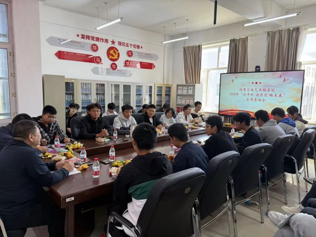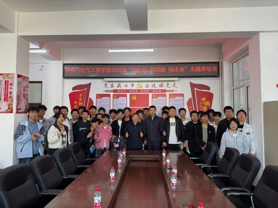 丰收金秋,丹桂飘香。临此中秋佳节,为弘扬中华民族优秀传统文化、丰富师生文化生活、凝聚学院发展力量,10月6日上午,信息与电气工程学院2025年“迎中秋 话团圆 畅未来”主题茶话会在学院举行。学院党委副书记刘传明、辅导员代表宋春鹏以及学生代表们欢聚一堂,同叙情谊、共话未来。