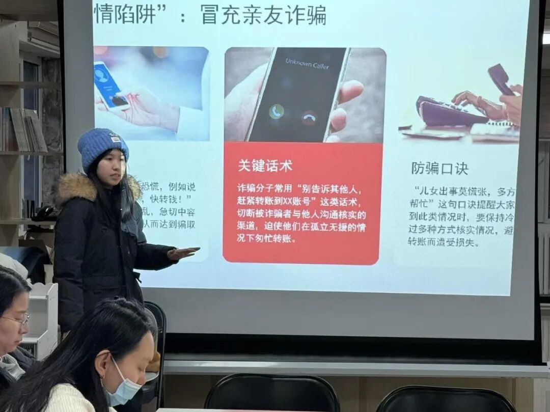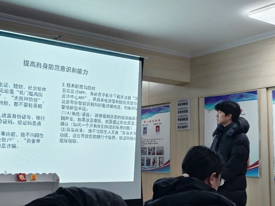 为进一步宣传防诈反诈,筑牢防诈骗安全防线,12 月 17 日,信息与电气工程学院防诈骗宣传员志愿者团队,走进欣凤社区开展电信诈骗防范宣传讲解活动。此次活动得到欣凤社区居委会的大力支持,社区工作人员提前通过居民微信群、公告栏等渠道发布活动通知,有效吸引了不同年龄段的居民积极参与,为宣传活动的顺利开展奠定了良好基础。
