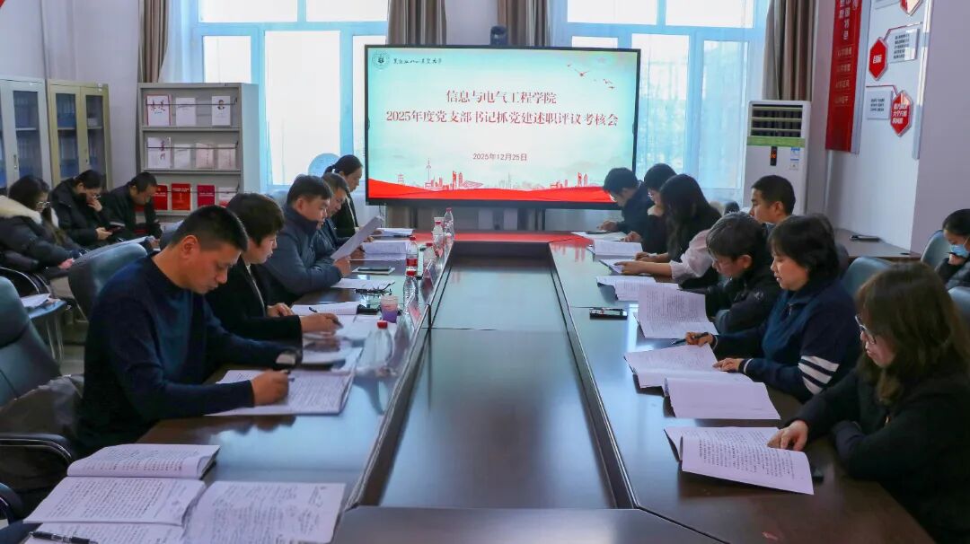 按照《黑龙江八一农垦大学2025年度基层党组织书记抓党建述职评议考核方案》的通知要求,12月25日,信息与电气工程学院以党委(扩大)会议形式组织开展2025年度党支部书记抓党建述职评议考核工作。学院党委班子成员、党支部书记、党员群众及学生代表参会,党委组织部组织科科长吴国军列席会议,学院党委书记刘彤彤主持会议并讲话。
