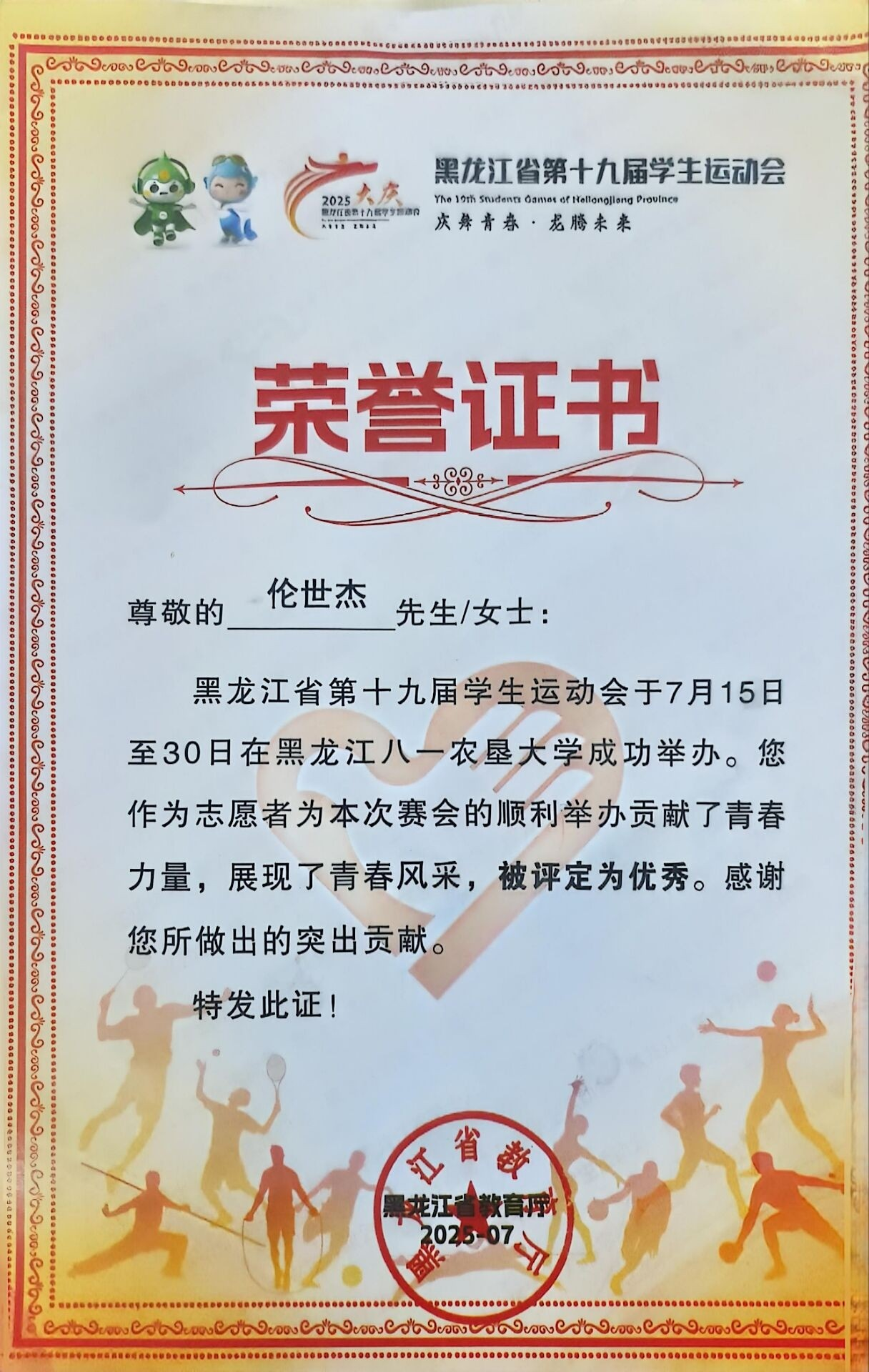 作为学院社团联合会理事长,他用责任与担当擦亮青春最美的底色。凭借在社区志愿服务中的突出表现,他先后获评“校优秀志愿者”“黑龙江省第十九届学生运动会优秀志愿者”等荣誉称号。