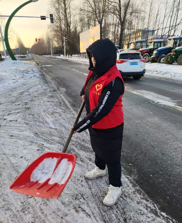 短短三天里,崔静玲以踏实细致的态度投入到社区服务的每一个环节。雪后清扫中,她和队员们拿起铁锹、扫帚,认真清理公共道路、单元门口和坡道台阶上的积雪,为居民安全出行提供保障。刺骨寒风中,那些弯腰铲雪的身影虽然平凡,却最能映照志愿服务的真实底色。她用实际行动证明,奉献从来不是遥远的口号,而是落实在一锹一铲的坚持里,体现在为群众排忧解难的点滴付出中。