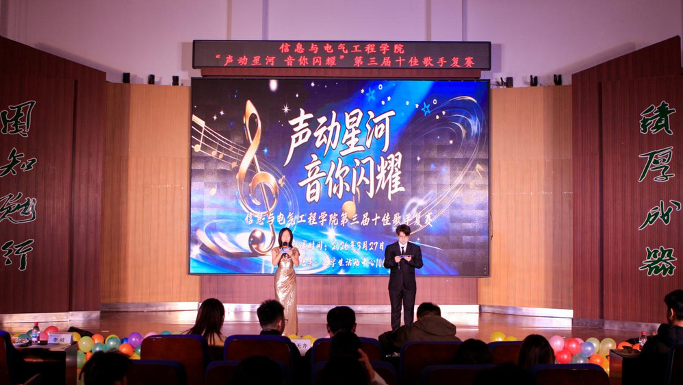 青春与旋律交织,梦想与舞台相遇。2026年3月27日,信息与电气工程学院“声动星河 因你闪耀”第三届十佳歌手复赛在大学生活动中心106室成功举办。